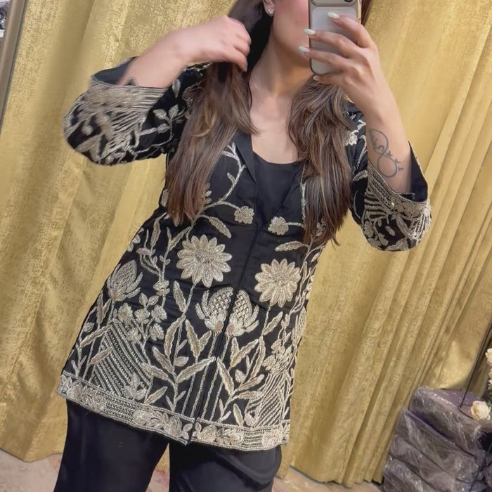 This piece from Raabiya by Navya embodies understated luxury and effortless style. Crafted from premium fabric and finished with intricate hand embellishment, it offers the perfect balance of elegance, comfort, and contemporary design.