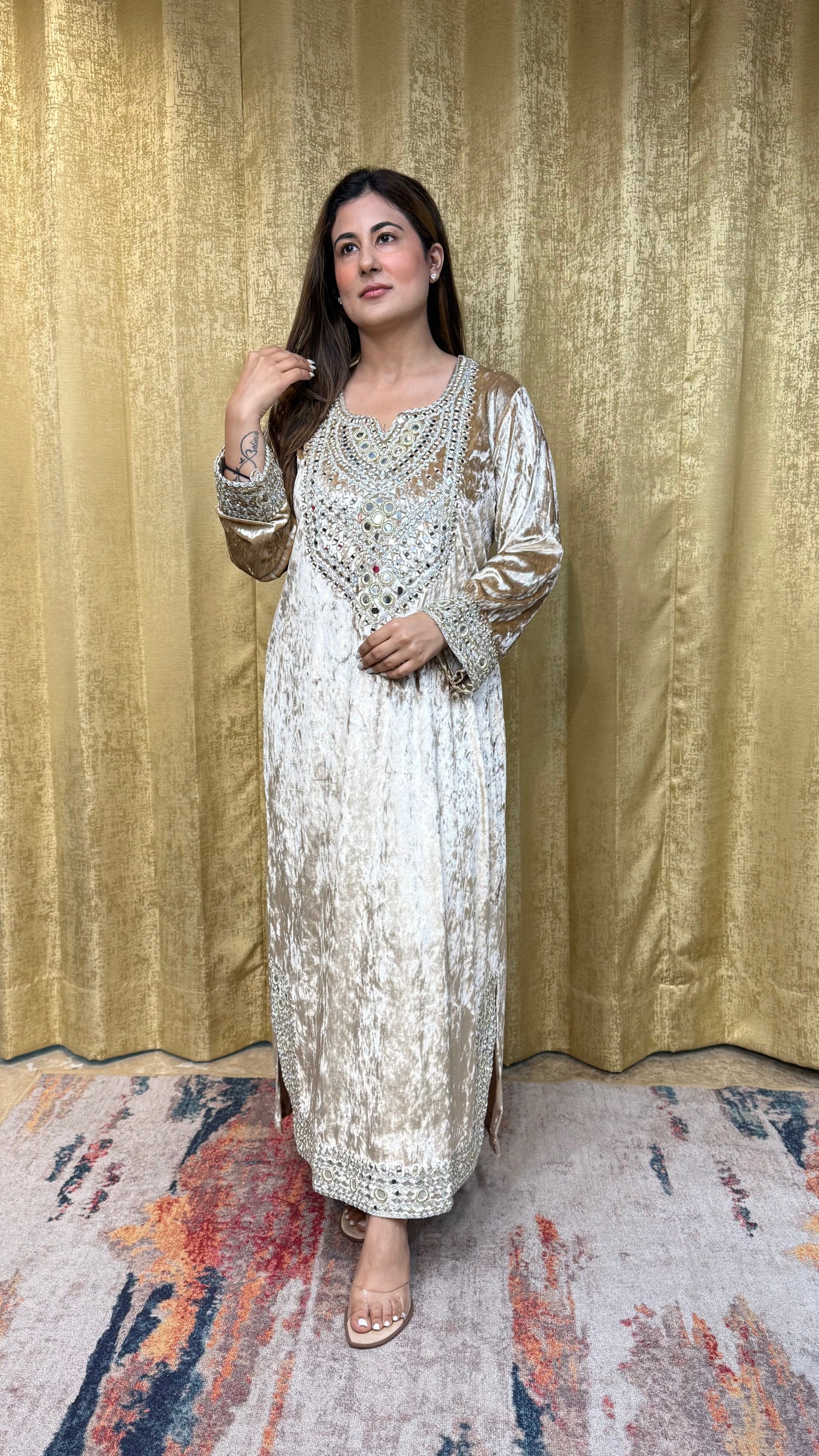 Ideal for all your occassions - from evening celebrations, destination events, festive gatherings to casual n chique office/home wear . It brings a sense of refined glamour to every occasion.