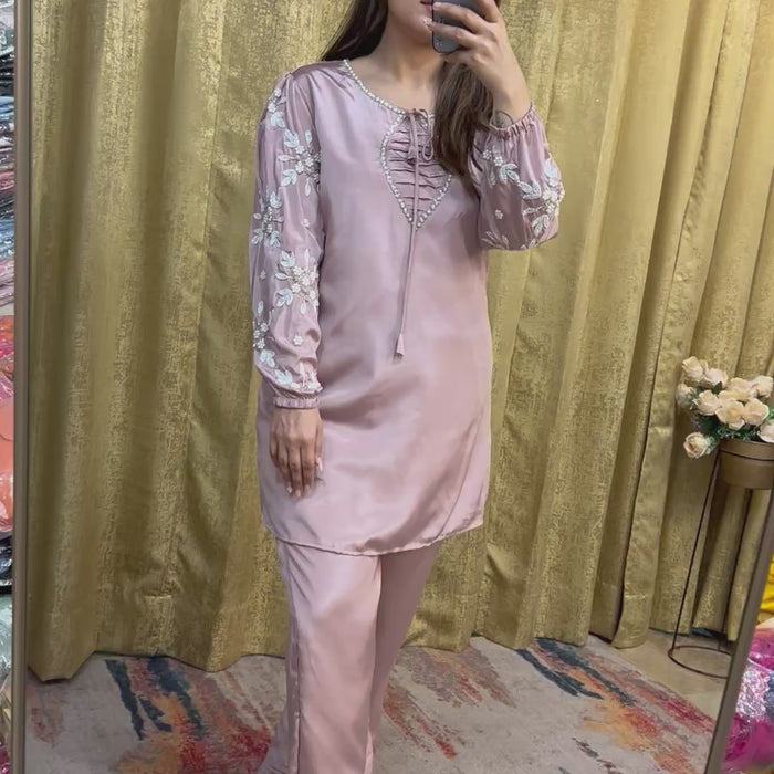 This piece from Raabiya by Navya embodies understated luxury and effortless style. Crafted from premium fabric and finished with intricate hand embellishment, it offers the perfect balance of elegance, comfort, and contemporary design.
